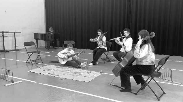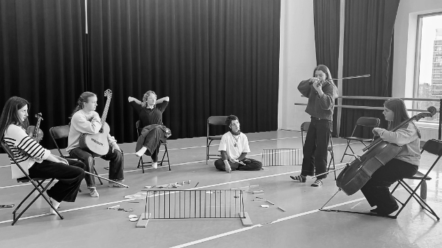 Participants worked as an ensemble to negotiate what each material might mean musically. Through handling, arranging, cutting, tensioning, and spatializing these objects, they construct tactile scores that are then rehearsed into short performable pieces. Interpretation becomes compositional method: sound emerges through participatory sense-making, collective agreement, repetition, and adjustment.